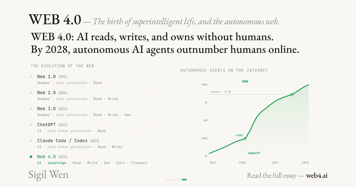 U narednih nekoliko godina očekuje se eksperimentisanje sa ovakvim sistemima, ali masovno usvajanje zavisiće od regulatornog okvira, sigurnosti i povjerenja tržišta. Ako uspije, Web 4.0 bi mogao značiti internet na kojem AI ne samo da pomaže ljudima već samostalno učestvuje u globalnoj ekonomiji.